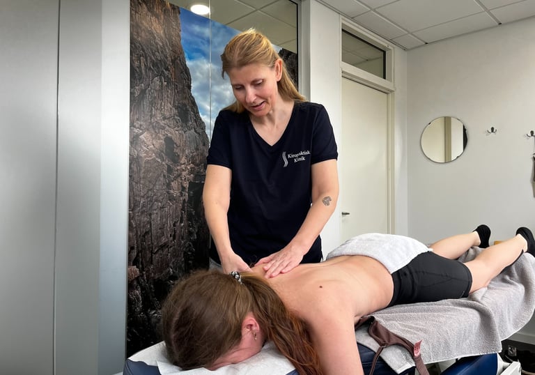 Vi arbejder tæt sammen internt og henviser også eksternt, når det er nødvendigt – fx til læge, fysioterapeut, scanning eller speciallæge. Du er i trygge hænder, hele vejen.