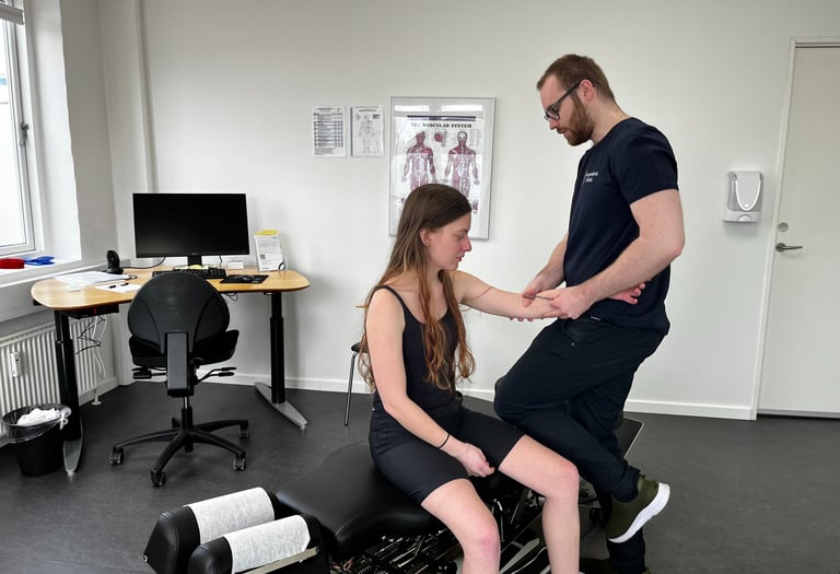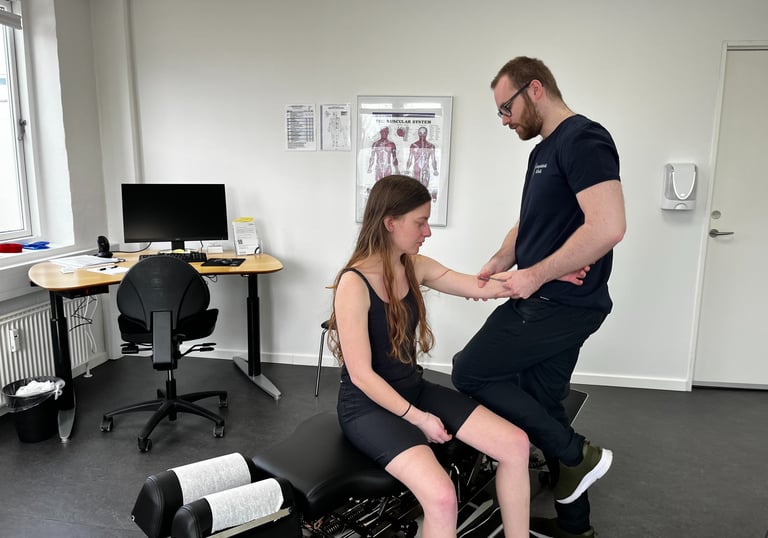 Vi undersøger og behandler også smerter og overbelastning i armene – fx tennisalbue, golfalbue, skuldersmerter fra overbelastning og irriterede slimsække.